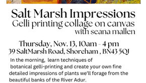 Salt Marsh Impressions Gelli printing collage on canvas with Seana Mallen
